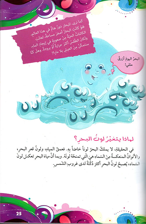 نبذة الناشر:الحيواناتُ، والنباتاتُ، وأجسامُنا، والفُصولُ، والسماءُ، والأرضُ، وما تحتَ الأرض، وجمال الأرض، والطبيعة والتكنولوجيا، والفضاء، والكائنات الحية وقدراتها، كل شيءٍ فيها يدلُّ على وجود الله.. حيث تنتظر الأجيال الناشئة مغامرةً مثيرةُ حافلةٌ بالمتعةِ والمعرفة بينَ هذه المجموعة العلمية الغنية بالرسوم والألوان.