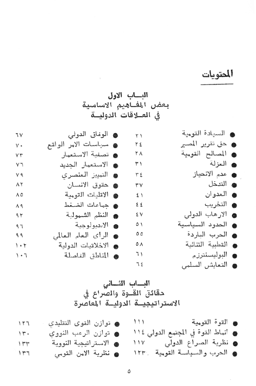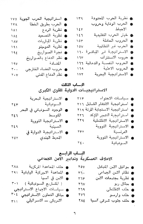 ويحاول الكتاب بذلك أن يسد فراغاً كبيراً في المكتبة العربية في ...موضوعه، إذ أنه يمثل سابقة علمية عربية ومرجعاً أساسياً وضرورياً، ليس فقط لدارسي الاستراتيجية الدولية والأمن القومي والدبلوماسية، وإنما أيضاً لكل المعنيين بقضية السلم والحرب.