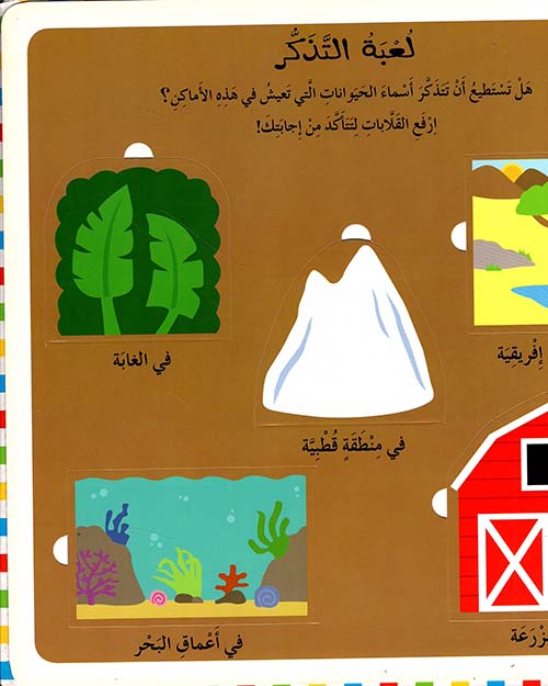 نبذة الناشر:كتاب الحيوانات هذا مناسب جداً للصغار، ويحتوي على أكثر من 100 حيوان والكثير من القلابات ليرفعوها ويكتشفوا ما تحتها!