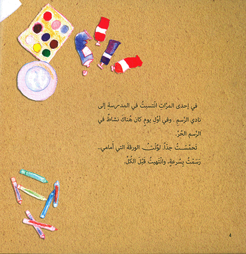 نبذة الناشر:"كيف صِرتُ حكواتياً" حين انتسب جاد إلى نادي الرسم، كان عنده الكثير من القصص التي يُريد أن يقولها، ويضعها على الورق رسوماً تعبِّر عما في خيالِه، لكنه يفشل، ويكاد يُصاب بالإحباط، لولا معلمة تأخذ بيده، ترى إلى أين ستقوده، بعد أن عرفَت كيف وأين سيُطلق العنان لخياله؟...
