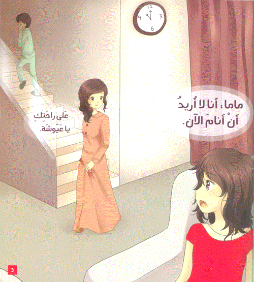الكتاب الرابع «لا أُريدُ أَنْ أَنامَ مُبَكِّراً»: بدأت الإجازة الصيفية وعيوشة تحب السهر ومشاهدة برامجها المفضلة. هل منعتها الأم ودخلت معها في نقاش طويل؟