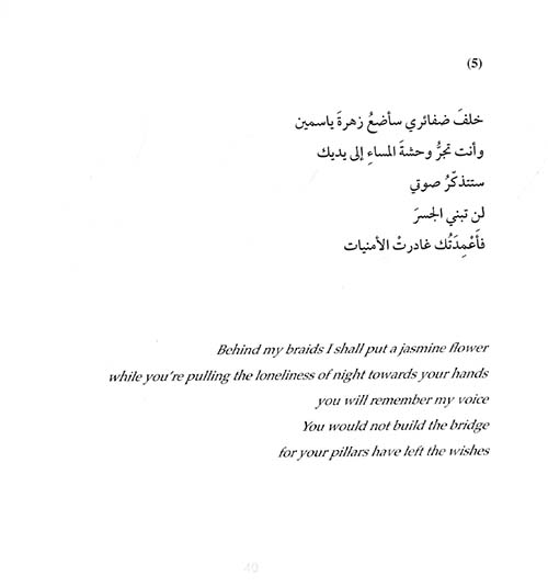 "أضع قلبي بين كفّيَ / أخبئه / كي لا ينبض بك / لكنّي ... / أجهلُ .. / من أين يأتي هذا العزف ...". وبهذا المعنى تخضع الشاعرة نصها كلياً للإحساس الداخلي / الباطني وللشعور الممتزج بالواقع والحدس معاً، وتشكل عبره خطابها الفني الإبداعي فالقارىء سوف يقف أمام رؤيات إبداعية متعددة تدهشه مع كل نصّ، وقد تمظهر ذلك عبر مخيلة ضاجة بالألم تارة وبالفرح والحياة تارة أخرى، فالشاعرة عرفت كيف تثور فاعلية الحرف وجماليته عبر إحساس عميق بالحدث والتعبير عنه كلوحة فنية تقوم بمزج ألوانها وترتيبها بنفسها "أرتب فوضاي / الحروف بلا نقط / والأماكنُ / تسرقُ ذاكرتي للبعيد / الزمنُ / عقربٌ مجنونٌ / وأنا / أجمع الحروف / بينما تذوبُ لهفتي / في هذياناتِ / شمسٍ غجرية ...".