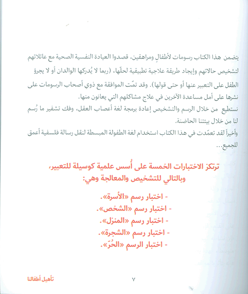 نبذة الناشر:كثيرة هي الطرق والأساليب التي يمتلكها البشر للتعبير عن مشاعرهم وانفعالاتهم ومكنونات أنفسهم سواء بالطرق اللفظية الشفوية الصريحة، أو بطرق أخرى لا شعورية. ولكن طريقة التعبير هذه قد تبدو مختلفة عند الأطفال خاصة أولئك الذين لا تؤهلهم قدراتهم اللغوية على التعبير عما يشعرون ويرغبون في تحقيقه.
