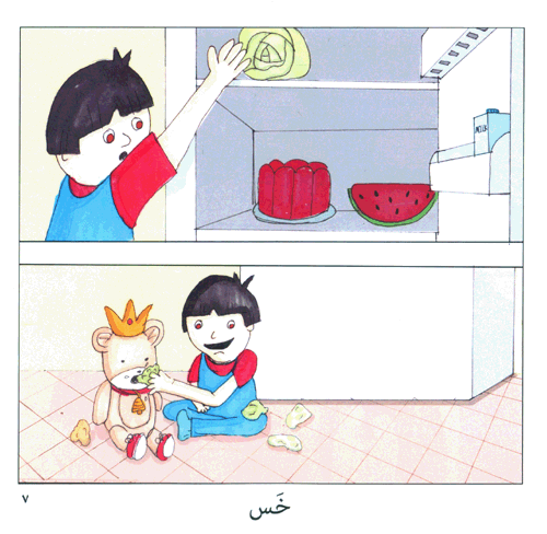 نبذة الناشر:يلعب ماني بدبّه ويلبسه ويحاول إطعامه من الأطعمة البلاستكية ثم يذهب إلى المطبخ ليطعمه أطعمة حقيقية فيتسخ وتغضب ماما ثم يغتسل الدب، كل الكلمات المستخدمة مألوفة جداً لدى الطفل ممّا يسهل عليه تعلم قراءتها بسهولة.