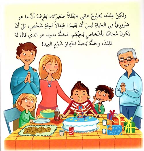 ولكن عندما يصبح هاني "بطلاً صغيراً"، لا يقوم بحركات للفت الإنتباه في كل لحظة. فإذا نال إطراءً لا يتباهى به بل يشكر من ...يخصه به بكل بساطة. نبذة الناشر:في هذه الأيّامِ، يَتباهى هاني ويَتَبَجَّحُ ويَتَفاخَرُ طَوالَ الوَقت. "أنا... وأنا... وأنا..." لا أَحَدَ يَهُمُّ سِواه، كَم هذا مُزْعِج!...