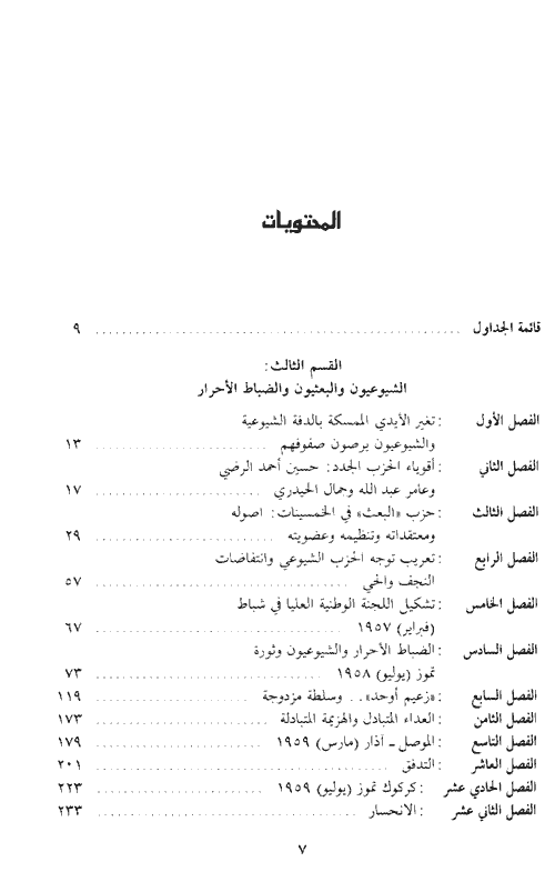 ويتناول الكتاب الثالث الشيوعيين والبعثيين والضباط الأحرار، وهي الحركات التي شكلت بشرائحها الأساسية التعبير الأول من الطبقات الوسطى في العراق. وركّز الكتاب على أصول هذه الحركات لاستنباط جذور الأفكار والعواطف التي كانت تسيرها، ووصف صيغها التنظيمية وبناها الاجتماعية، وإعادة بناء حياتها الداخلية في اللحظات ذات المغذى، وتتبعها في حالات الانحسار والمدّ في مقدراتها، وتقييم الذي كان على البلاد وتاريخها. إقرأ المزيد