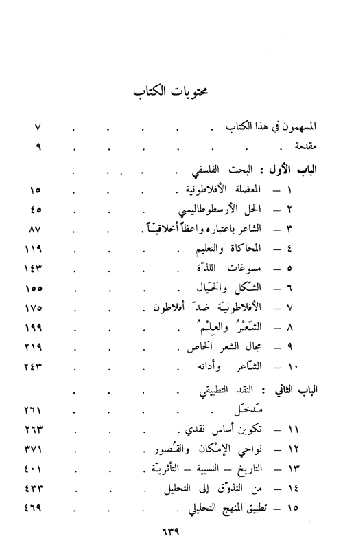 إن تقسيم الكتاب إلى أبوابا ثلاثة أمر إملاء المنطق والضرورة من المؤلف. إذ يتناول الباب الأول أجوبة النقاد المختلفين على السؤال التالي: ما ماهية الأدب وما وظيفته وق يمته؟ ويتناول الباب الثاني الناقد التطبيقي، والأساليب المتباينة التي قومت على أساسها بعض الآثار الأدبية، وكيف ينبغي أن تقوم تلك الآثار. أما الباب الثالث فيتناول حقوق المعرفة لأخرى التي قد يستند إليها الناقد الأدبي، كعلم النفس وعلم الاجتماع. وهو يبحث في العلاقة بين النقد الأدبي وتلك العلوم. إقرأ المزيد