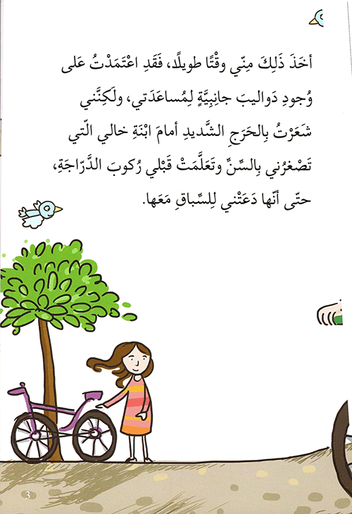 نبذة الناشر:أخيراً تعلّمت ركوب الدرّاجة الهوائية وحدي. أخذ ذلك مني وقتاً طويلاً. فقد اعتمدت على وجود دواليب جانبية لمساعدتي، ولكنني شعرت بالحرج الشديد أمام ابنة خالي التي تصغرني بالسن وتعلّمت قبلي ركوب الدراجة. وحتى أنها دعتني للسباق معها. ترى من سيفوز بالسباق؟.