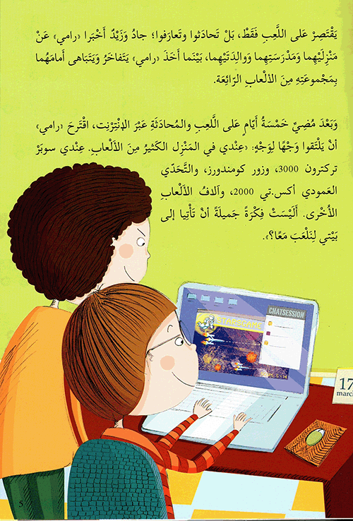نبذة الناشر:يشعر "زيد" و"جاد" بالضجر، فالطقس العاصف يمنعهما من الخروج لللعب. ماذا سيفعلان؟ يقترح "زيد" استخدام الانترنت والمشاركة في أحد المواقع للألعاب الإلكترونية الرائعة. وبينما كانا يلعبان، تظهر نافذة للحوار، أحدهم يود التعرف إليهما ومشاركتهما اللعب. يبدأ التحدي بينهم، يحاول كل من "زيد" و"جاد" التغلب على الصديق الذي لا يعرفانه…