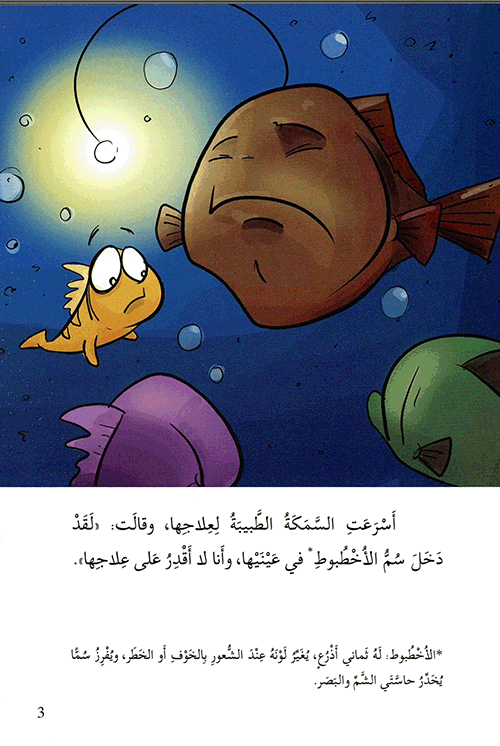 نبذة الناشر:استيقظ الحيوانات حين بدأت السمكة المضيئة بالصراخ ” يا ويلي ! لقد فقدت بصري !! لا أستطيع أن أرى أي شيء !!! ساعدوني ” اجتمعت الكائنات البحرية حولها , وهي تضرب الماء بذيلها , وترتطم بالصخور وتصرخ باكية . أسرعت السمكة الطبيبة لعلاجها , لكن الحزن سكن القلوب , حين ...تنهدت السمكة الطبيبة وقالت : لقد دخل سم الإخطبوط في عينيها … وأنا لا أقدر على علاجها.. قصة مشوقة عن الحيوانات البحرية، خصائصها ودورها في الحياة إقرأ المزيد