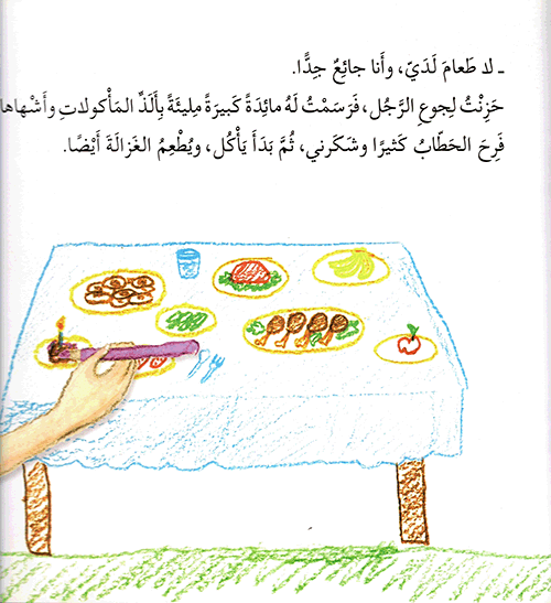 نبذة الناشر:بالقلم الأسود، رسمت معولا وبضعَ بذور للزّراعة، وجدول ماءٍ صغيرا باللون الأزرق، وباللون الوردي رسمت عروسا جميلة ترتدي فستانا كالأميرات، تجلس قرب شجرة السنديان تقرأ
