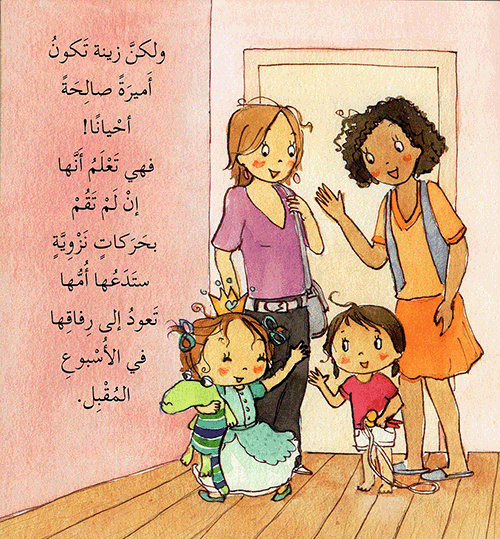 ولكنْ عِنْدَما تُصْبِحُ زينة أَميرَةً صالِحَةً لا تَقومُ زينة بأَيِّ نَزْوَةٍ وتُطيعُ من دونِ مُناقَشَة، يا لَها مِنْ فَتاةٍ لَطيفَة!...