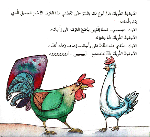 نبذة الناشر:الديك في هذه القصّة يطالب بالعدل والمساواة والرحمة، إلى أن جاءت الجدّة وقالت بأنَّها ستوزِّع القمح إلى الذي يضع البيض أكثر. فقام الديك بالتدرُّب على وضع البيض ولكنَّه فَشِل. على الرغم من ذلك لم يستسلم، إلاّ أنَّه أخذ ثلاث بيضات من دون علم الدجاجات وقدَّمها إلى الجدّة التي قرَّرت بيعه ...ــ باعتباره دجاجة ــ إلى صاحب مدجنة. تُرى هل سيعترف بالحقيقة أنَّه ديك وليس دجاجة؟ إقرأ المزيد