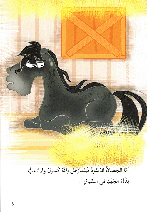 نبذة الناشر:يعيش في الاسطبل حصان أسود وحصان أبيض.. يشارك الحصان الأبيض في السباق فيربح المركز الأول دائمًا. أما الحصان الأسود فيتمارض لأنه كسول ولا يحبّ بذل الجهد في السباق. كيف سيساعد الحصان الأبيض صديقه في التخلص من الكسل؟