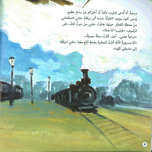 جاء الكتاب بعنوان "الصديقان فيليب وكلود" وهو من تأليف "أنا أوبيولز" ورسوم "جوان سوبيرانا وهو على شكل قصة تهدف إلى تعريف الأولاد بالرسام الفرنسي "كلود مونيه (1840-1926) المولود في باريس، وسيقدمه إليهم صديقهم الصغير "فيليب" عبر رحلة جميلة في الهواء الطلق، سيشاهدون لوحاته التي هي أشبهُ "بأوركسترا منَ الألوان" وقريته ومنزله الوردي ومطبخه الأزرق وغرفة طعامه الصفراء وقاربه الذي حوّلَهُ إلى مرسمٍ عائمٍ، وحديقته المائية المليئة بالزنابق الحمر.. وأشياء أخرى جميلة لا يعرفونها عن هذا الرسام العظيم، وقد سُردت في الكتاب بطريقة ممتعة وصُورٍ ملوَّنة وجذابة. إقرأ المزيد