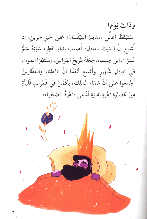 نبذة الناشر:يَتَعَرَّضُ مَلِكُ "مَدينَةِ البَيْلَسان" لِأزْمَةٍ صِحَّيَّةٍ طارِئَةٍ، وشِفاؤهُ يَكْمُنُ في قَطَراتٍ مِنْ زَهْرَةٍ نادِرَةٍ تَنَبُتُ فَقَطْ في الصَّحْراءِ الواسِعَة، وحيكَتْ حَوْلَها الأساطيرُ والحِكاياتُ الغَريبَة.