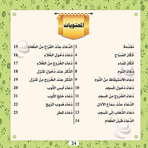 نبذة الناشر:علّم طفلك أمور دينه بأسلوب سلِس مُيسَّر يجمع ما بين نصوص مُشكّلة كي تساعد الطفل على القراءة الصّحيحة والصّوَر المعبرة.