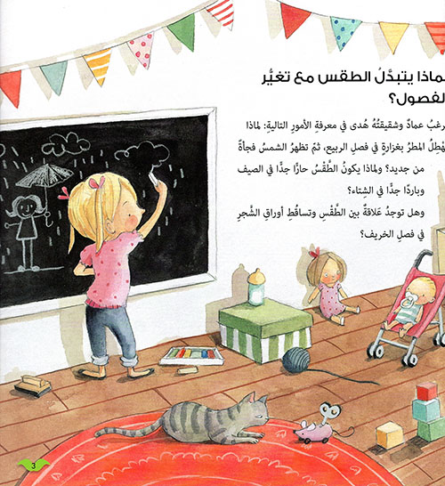 يحب عماد وهدى الاطلاع كثيراً. انضم إليهما في هذه المغامرة واكتشف الإجابة على هذين السؤالين والأسئلة الكثيرة الأخرى التي يمكن أن تطرحها على نفسك. اكتشف أيضاً كيف يتبدل الطقس بتغير الفصول، وكيف تتكيف النباتات والحيوانات والإنسان مع هذه التغيرات.