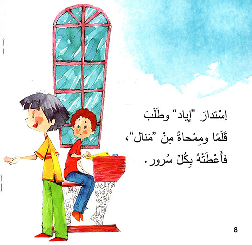 نبذة الناشر:تعرض سلسلة "نصنع الفرح" الخبرات اليومية التي يعيشها التلامذة في المدرسة بشكل يومي، من خلال قصص اعتمدت المفردات السهلة، والجمل القصيرة، والعرض الواضح للمشكلة وتطورها ، ثم كيفية إيجاد حل لها في نهاية القصة. وقد تم اختيار مضمون القصص من التجارب اليومية التي