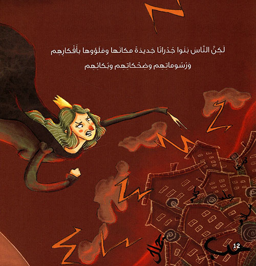نبذة الناشر:كان يا ما كان في قديم الزمان، ملكة تكره الأفكار والكلمات فقررت أن تسجن كل الكتب وكل الأغاني وكل الضحكات وكل الأفكار. استغرب الناس، وبدؤوا يرسمون عوضا عن ذلك ويخربشون، فامتلأت جدران المدينة بكلماتهم. فغضبت الملكة غضبا شديدا وقررت أن تقيّد كل الجدران على الجدران بالسلاسل والأصفاد وتجرها إلى السجون. ...فبنى الناس جدرانا أخرى مكانها وعادوا يكتبون ويرسمون ويخربشون. فاحتارت الملكة ماذا تفعل كي تتخلص من كل هذه الكلمات مرة أخرى. اقترح وزيرها الطيب أن تقبال الملكة ابنته لأنها ذكية وقارئة ولربما كان لديها حل ما. قابلت الملكة ابنة الوزير فقالت لها إن الأفكار والضحكات لو سجناها فستطلع من أماكن أخرى. ستطلع كالزهور من السطوح والتراب والهواء ولربما طلعت من رأسنا وأذنينا كذلك. استمتعت الملكة بصورة الزهور التي ستخرج من أذنيها ورأسها ويديها وحاولت ألا تضحك حاولت وحاولت، لكنّ الضحكات والأفكار والكلمات والدمعات يستحيل أن تسجن..يستحيل أن تهلك... إقرأ المزيد