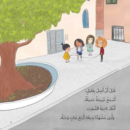 لكنها في كل مرة تشعر بالخجل وتبتعد لأنها تشعر بعدم قدرتها على مجاراتهن. تظل الترنيمة في بالها، تسمعها في كل حين؛ فتقرر أن تتدرب وتتدرب ...إلى أن تتقن اللعبة.