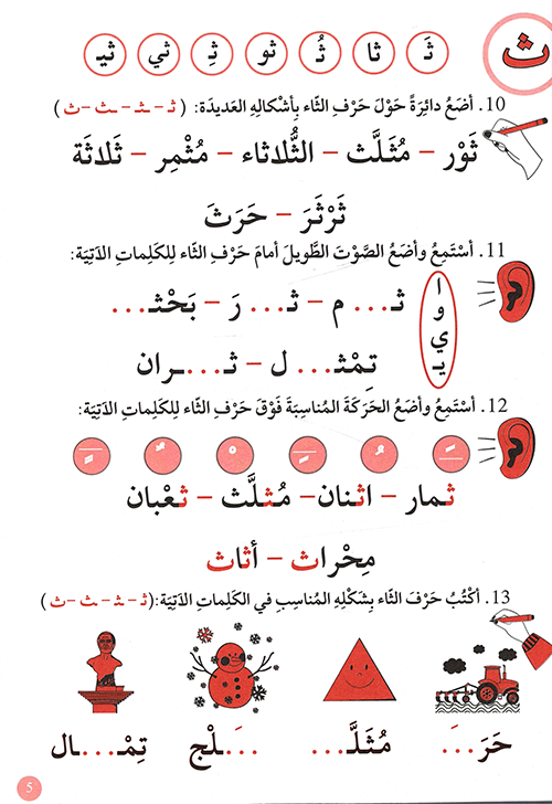 -كِتابُ المُسْتَوى 3 مُتَقَدِّم يَشْمَلُ الحُروفَ المُتَشابِهَةَ لَفْظاً والأقَلَّ تَواتُراً في كَلِماتِ الأطْفال.
