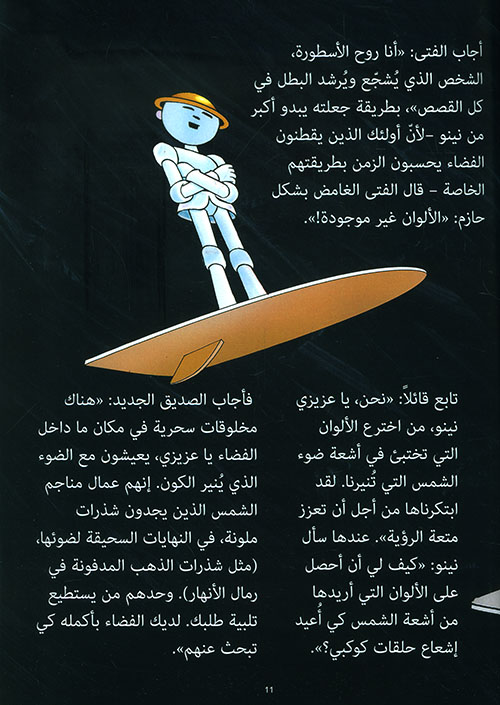 نبذة الناشر:إنها قصة فتىً اسمه "ساتورينو"، والجميع يدعونه "نينو" ظلّ يطير في الفضاء على متن لوح تزلّج وسط الأمواج الكريستالية الملوّنة لحلقات كوكبه، زُحل. الكوكب الأجمل بين كل كواكب المجموعة الشمسية.. والأحب إلى قلبه...