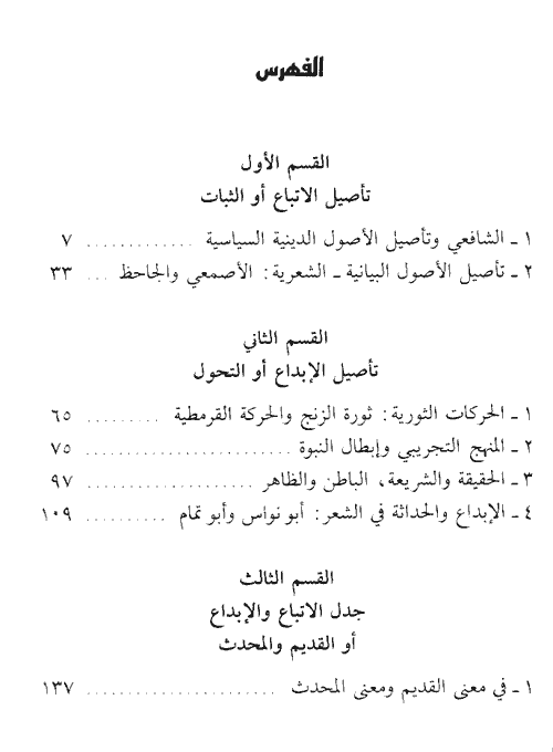 ويتابع أدونيس البحث في صدمة الحداثة ولكن في الموروث الشعري منطلقاً من تساؤلات: ما الحداثة في الشعر؟ ما المشكلات التي تثيرها في اللغة، من الشعر، والدين والثقافة، بعامة؟ كيف نظر إليها النقاد في العصر العباسي وفي عصر النهضة، وكيف تجلت عند الشعراء في هذين العصرين؟ وهل علم جمال الشعر، هو علم جمال الثبات، أم علم جمال التغير. وللإجابة على هذه التساؤلات آثر أدونيس دراسة الظواهر الشعرية التي تفيده في إضاءة ما يذهب إليه في مسألة الحداثة الشعرية، وعرض الظواهر النقدية والأدبية الخاصة، والفكرية العامة، ما يرتبط ارتباطاً وثيقاً بهذه المسألة.نبذة الناشر:"فكّر المسلمون الأوائل وسلكوا انطلاقاً من إيمانهم بأن الدين الإسلامي أساس ومقياس للنظرة إلى الغيب والحياة الإنسانية معاً، وقد ربطوا ربطاً عضوياً بين الدين وتنظيم الحياة، وبين اللغة والشعر والفكر.