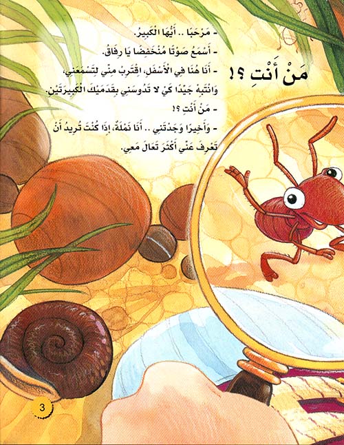 نبذة الناشر:اِكْتَشِفْ عَالَمَ النًّمْلِ... عِنْدَمَا تَسِيرُ قَرِيباً مِنْ عُشّ النَّمْلِ كُنْ حَذِراً حَتَّى لَا تَدُوسَ عَلَى النَّمًّلٍ؛ فَهِيَ كَائِناتٌ صَغِيرةٌ نَشِيطَةٌ تَعِيشُ فِي عَالَمِ رَائعٍ، تَتَعاوَنُ فِيمَا بَيْنَهَا عَلَى أَدَاءٍ الْوَظَائِفِ الْمُخْتَلِفَةِ كَالإْعُتِنَاءِ بِالْبَيْضِ، وَالدْفَاعِ عَنِ الْعُشِّ، وَالْبَحْثِ عَنِ الطًّعَامِ.