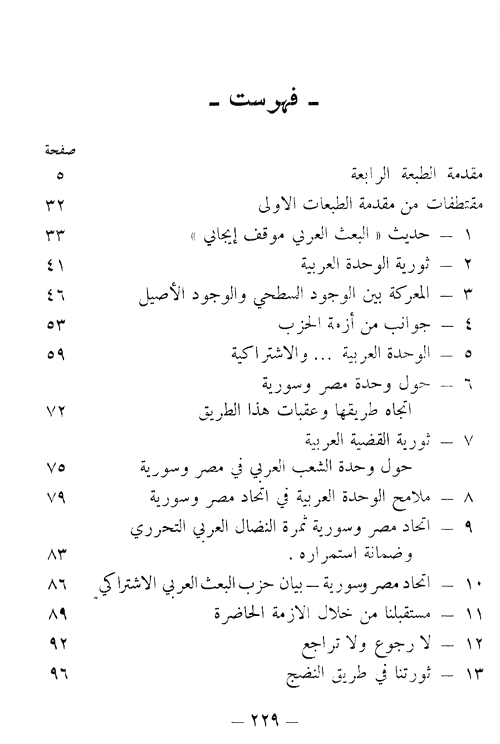 وليس أكثر من العودة إلى التراث الثوري الذي مهد لوحدة 1958، ورافق مرحلة الصمود الشاملة في النضال العربي خلال الخمسينات، والذي يتميز كتاب (معركة المصير الواحد) للأستاذ ميشيل عفلق –مؤسس حزب البعث العربي الاشتراكي- باحتواء الجانب الأوفر منه، ليس مثل هذه العودة ما يكشف الحقيقة ويشكل دليلاً حسياً على أن الذين تحملوا مسئولية قيادة المرحلة السابقة قد كانوا يعيشون في واد آخر لا يمت بصلة إلى ما طرحه الفكر العربي الثوري، ولذلك جاء نهجهم دليلاً على أنه لم يستوعب شيئاً من معطيات هذا الفكر، بل كان يضيق به وبمقاييسه وبمعاييره النقدية، ويكن له الحقد. وقد تجلى هذا الموقف السلبي في سلسلة من ردود الفعل، بدأـ بتجاهل هذا الفكر وانتهت بمصادرة مقولاته وتشوييها بالتطبيق المنحرف.
