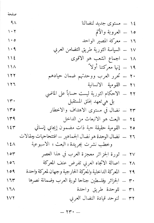 ومن هنا كانت إحدى المبررات الأساسية لإعادة طبع كتاب "معركة المصير الواحد" للأستاذ ميشيل عفلق. هذا الكتاب الذي يعالج من خلال الأحاديث والكتابات التي جمعت فيه، قضية المصير العربي، على ضوء معطيات مرحلة الخمسينات، والذي يستشرف إلى حد بعيد إبعاد المرحلة المقبلة، ويحدد المعايير الأساسية لسلامة النضال القومي التحرري الاشتراكي. إقرأ المزيد