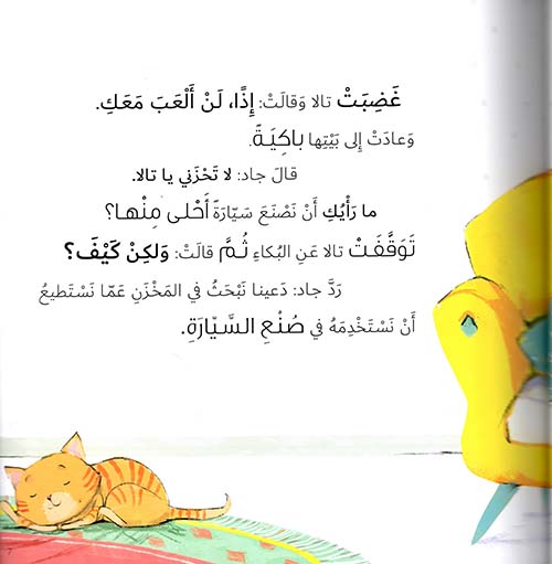 نبذة الناشر:"تطلب تالا من صديقتها سارة أن تسمح لها بركوب سيّارتها الحمراء الجديدة، لكنّ سارة ترفض بشدّة؛ فتحزن تالا وتعود إلى بيتها باكية.