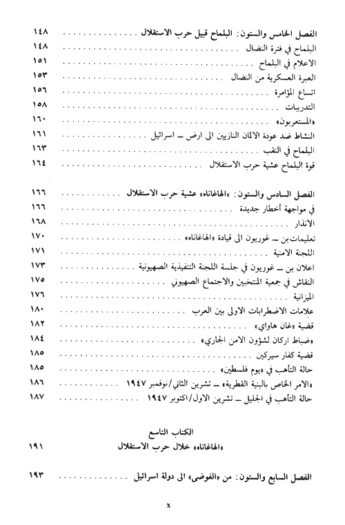 وقد تم ترجمة "الكتاب الثامن" و"الكتاب التاسع" من القسم الثاني-المجلد الثالث، اللذين يبحثان في دور "الهاغاناه" في الحرب والاستعدادات العسكرية والسياسية الصهيونية منذ صدور قرار التقسيم في تشرين الثاني/نوفمبر 1947 حتى إعلان قيام إسرائيل في أيار/مايو 1948.