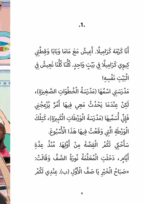نبذة الناشر:عندما دخلت المعلمة نورة الصف وقالت: صباح الخير، ستذهب البنات إلى نادي السباحة القريب من مدرستنا غدًا. هتفت كرمة بسعادة؛ لأنها سترتدي ثياب سباحة لها ربطة خلف العنق، وشحّاطة تزقزق عندما تبتل، ونظارات سباحة تبدو فيها مثل «سبونج بوب»، لكن «تينة متيني» همست لها بعبارة جعلتها تتجمد من الخوف. ...ترى… ماذا قالت تينة؟ قصة تدور حول موضوع الصداقة وتحدي المشاعر السلبية. إقرأ المزيد