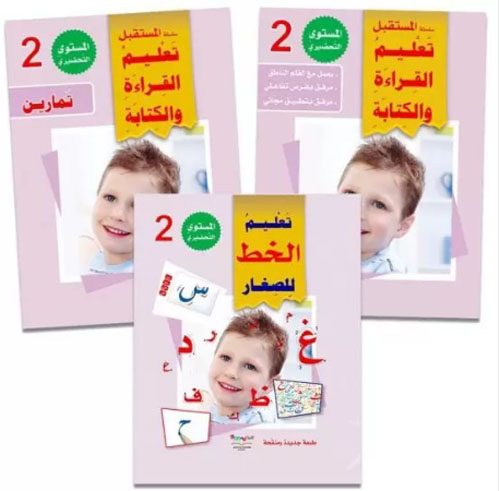 – ٣ دفاتر للخط والإملاء، تقدم تدريبات لكتابة الحروف في "أول ووسط وآخر الكلمة".. وتدريبات لتعزيز المهارات الحركية اليدوية