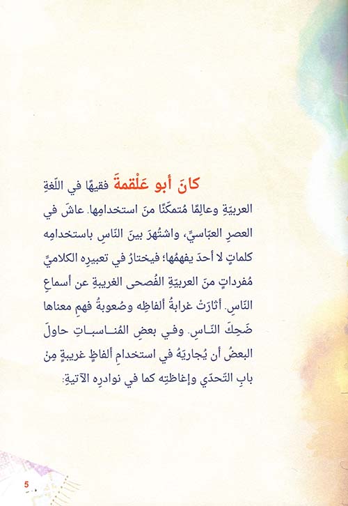 نبذة الناشر:نادى أبو عَلقمةَ غلامَه وسألَه: "يا غُلامُ، ما صنعَ غريمُنا؟"، قالَ له الغُلامُ: "سَقَعَ"، سأَلَه أبو عَلقمةَ: "ويلَكَ، ما معنى سَقَعَ؟".