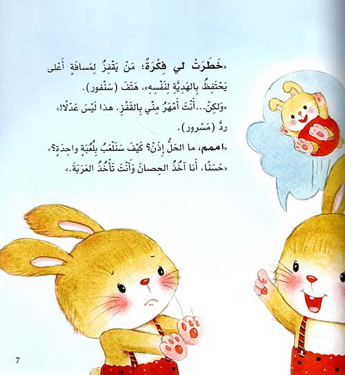 نبذة الناشر:ثلاث قصص بعناوين مختلفة: "التّوأمان"، و"بيت بلا سقف"، و"الصّديق الجديد" نغرس عند الطّفل ثلاث قيم مترابطة وهي المشاركة، والتّعاون، وتقبّل الآخرين، من خلال رسوم إبداعيّة تجذب الطّفل، وشخصيّات ساحرة تنمّي خياله، ولغة بسيطة تقرّب القيمة إلى ذهنه وتسهّل عليه تطبيقها.