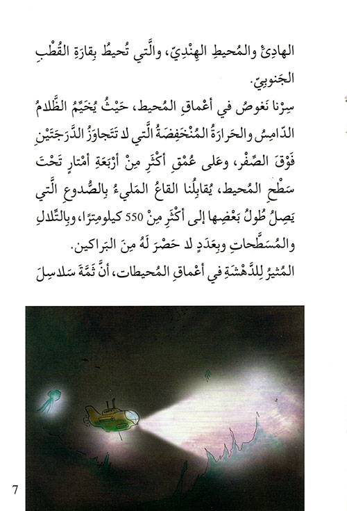 نبذة الناشر:اخْتَرَعَ البروفِسور «نور» غَوّاصَةً عَجيبَةً، واصْطَحَبْنا مَعَهُ في رِحْلَةٍ بَحْرِيَّةٍ في أعْماقِ البِحارِ والمُحيطات، تَعَرَّفْنا فيها عَلى مَعْلوماتٍ مُفيدَةٍ عَنِ البيئَةِ المائِيَّة. وفي أثْناءِ الرِّحْلَة، هاجَمَتْنا أسْرابٌ مِنْ أسْماكِ القِرْشِ المُتَوَحِّشَة، وتَعَرَّضَتِ الغَوّاصَةُ لِلغَرَق، ولَكِنَّنا قَفَزْنا إلى جَزيرَةٍ في وَسَطِ المُحيطِ فيها كائِناتٌ عَجبيَةٌ ومُدْهِشَةٌ، ودارَ بَيْنَنا صِراعٌ وأحْداثُ مُثيرَةٌ… ...هَيّا نَتَعَرَّفْ عَلَيْها في هَذِهِ القِصَّة. إقرأ المزيد