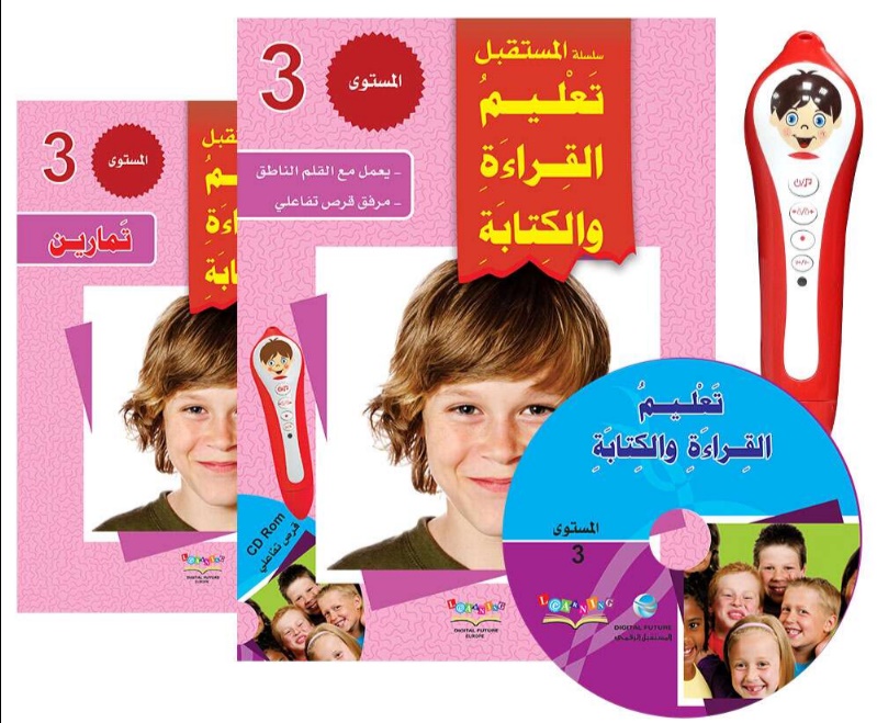 - ٣ دفاتر للخط والإملاء، تقدم تدريبات لكتابة الحروف في "أول ووسط وآخر الكلمة".. وتدريبات لتعزيز المهارات الحركية اليدوية لكتابة الكلمات العربية.