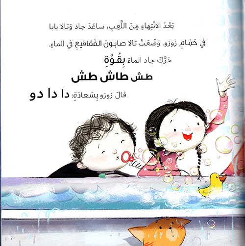 نبذة الناشر:يقضي جاد وتالا يومهما في اللعب في المنزل بسبب المطر في الخارج. وفي الّليل، يشتدّ الرّعد ويلمع البرق. تخاف تالا وتذهب إلى غرفة جاد لتنام عنده. إلّا أنّ صوت الرّعد يشتدّ ولمعان البرق يصبح أقوى،