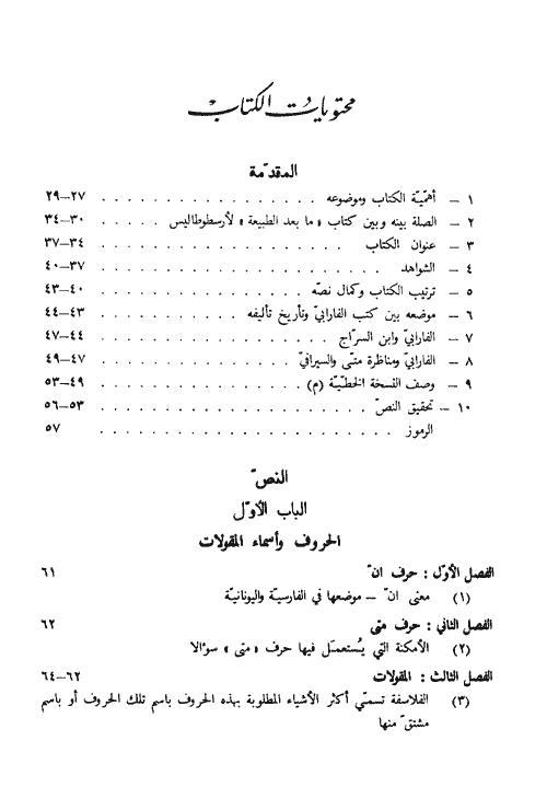 وأهم ما يجده الناظر في الكتاب اليوم هي الشروح الوافية لمعاني المصطلح العلمي الفلسفي في العربية ولغات أخرى غير العربية، والتعريف بما عمله المترجمون عنه نقلهم هذا المصطلح من اليونانية والسريانية، وتفسير المعاني العاميّة وصلتها بالمعاني العلمية، ثم البحث في أصل اللغة واكتمالها وعلاقتها بالفلسفة والملّة. وهذه أمور لم تكن معروفة قبل العثور على أصل كتاب "الحروف" أن الفلاسفة الذين كتبوا بالعربية قد استقصوا البحث فيها. ومع ذلك فموضوع الكتاب ليس اللغة والمصطلح العلمي فحسب، ولكنه تفسير لكتاب "ما بعد الطبيعة" لأرسطو طاليس، وهو أول كتاب ينشر للفارابي، في علم ما بعد الطبيعة، وما نشر له من قبل في هذا العلم مختصرات موجزة لا يفصل الفارابي فيها القول في الموجود وأعراضه كما يفعل في هذا الكتاب. وهو أقدم شرح واف بالعربية لأغراض كتاب "ما بعد الطبيعة" يعثر على أصله، ولا شك في أنه كان مصدراً استقى منه شرّاح كتاب "ما بعد الطبيعة" الذين أتوا بعد الفارابي، مثل ابن سينا وابن رشد، الكثير من آرائهم، في العلم الإلهي، وقد أضفى المحقق بعمله في هذه النسخة على كتاب الفارابي سهولة ووضوحاً مقدماً هذا الكتاب بمنهجية علمية معاصرة بمقابلة النسخ الأصلية الموجودة، ثم قام بتقسيم الكتاب إلى أبواب وفصول وفقرات، واضعاً عناوين لها من محتويات الكتاب وفي النص، مرتباً الحواشي متسلسلة بحسب الفصول والاعتناء بفهارس الأعلام والكلمات في نهاية الكتاب. إقرأ المزيد