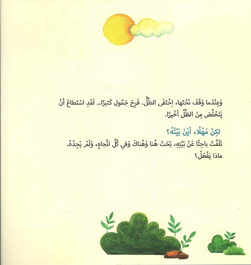 نبذة الناشر:بينما جمّول في الخارجِ يلعبُ، رأى ظلَّهُ على الأرضِ يُلاحقُه كيفما اتّجهَ. انزعجَ وحاولَ أن يهربَ منه أو أن يُضيّعَه، فركضَ نحوَ شجرةٍ كبيرةٍ، واختبأ تحت أغصانِها. وأخيرًا، ضاعَ الظّلُّ.. لكنّهُ فجأةً انتبهَ إلى أنّه أضاعَ شيئًا آخرَ غيرَ الظّلِّ: لقد أضاعَ جمّول الطّريقَ إلى البيتِ، فكيف يرجعُ إلى أمّه؟! ...إقرأ المزيد