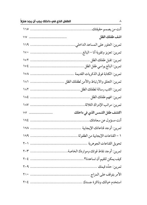 المؤلفة الناجحة شتيفاني شتال ابتكرت منهجاً فعالاً للتعامل مع "الطفل ...الداخلي"، الذي يبدأ بالتعرف على "الطفل الظل" المصاب، والذي يحمل قناعاتنا السلبية، ويخزن المشاعر السلبية التي خلقتها تلك القناعات في داخلنا، وحين نكونّ علاقة صداقة قوية مع "طفل الظل" فإنه سيحرر "الطفل الشمس"، وسنصبح بعدها أكثر رضاً وبهجة، ونتمكن بذلك من تكوين علاقات إنسانية سعيدة. إقرأ المزيد