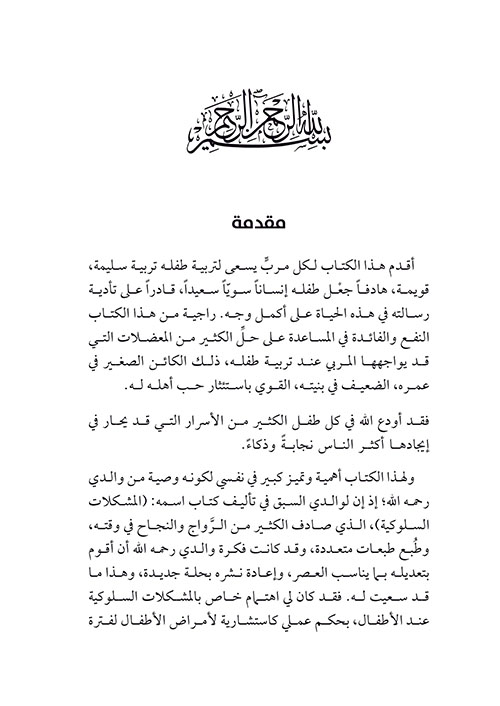 نبذة الناشر:هدف الكتاب الأساسي محاولة فهم الطفل وإحسان معاملته. وإثارة الاهتمام بهذه المشكلات، التي لا تلقى اهتماماً يُذكر في واقع الأمر. بخلاف المشكلات الصحية الجسمية التي يركز عليها الأهل التركيز الأكبر؛ إذ إن الأم إذا اشتكت إلى الطبيب عادة، اكتفى على الأغلب ببعض النصائح السريعة غير المجدية أو الضارة أحياناً، وبوصفةٍ ...طبية لا تقدم ولا تؤخر، وذلك لأن المشكلة هي مشكلة نفسية وتحتاج إلى دراسة مستفيضة وإلى بذل كثير من الجهد والوقت، لفهم جذورها، ثم محاولة تصحيح مواقف الأهل لمعالجتها. وهدف الكتاب كذلك مساعدة الأم في تنشئة ابنها التنشئة الصحية، وتربيته أقرب ما يكون من المتعة والهواية، وأن تجد فيها لذة ومتعة.. لا أن تكون ضريبة وعبئاً وخوفاً كما تصرح الكثيرات مع الأسف. إقرأ المزيد