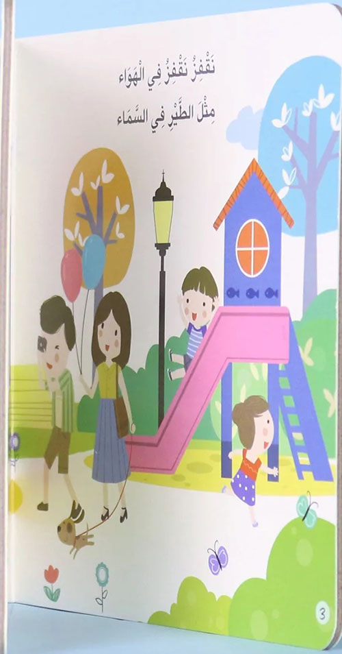 كيف تشجّع طفلك في التّعبير عن الأوقات الممتعة الّتي يمضيها مع رفاقه في الحديقة؟ وكيف ...ستعرّفه بالألعاب الّتي سيلعبها هناك؟ وكيف تعزّز في نفسه الشّعور بجمال الطّبيعة؟ تتناول هذه القصّة اليوم التَّرفيهيّ الممتع الّذي يقضيه الأطفال في الحديقة العامَّة، والألعاب والأنشطة الّتي يمارسونها مع بعضهم كالقفز والتَّأرجح والتَّزحلق ومشاهدة العروض الممتعة، كلّ هذا بأسلوب تفاعليّ مميَّز يُشير من خلاله الطفل إلى أشياء معيّنة في القصّة، فتبدو الطَّائرة الورقيّة كأنَّها تحلّق، والفقاقيع كأنَّها تتطاير في الهواء، والبطّ كأنَّه يعوم، وذلك لجذب الطّفل إلى القراءة، وتصفّح القصّة باستمتاع، ولفت اهتمامه إلى هذا العالم الممتع، مع تعزيز روح الاكتشاف لديه. إقرأ المزيد