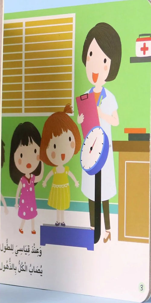 تتناول هذه القصّة الوقت الّذي يمضيه الأطفال في المركز الصّحّيّ عند الضّرورة، والفحوصات العديدة الّتي يجري الطبيب لهم، كلّ هذا بأسلوب تفاعليّ مميَّز يُشير من خلاله الطفل إلى أشياء معيّنة في القصّة، فيتعرّف كيف تعمل سماعة الطبيب، وجهاز فحص الصدر، ولوحة فحص النَّظر، وذلك لجذب الطّفل إلى القراءة وتصفّح القصّة باستمتاع، ولفت اهتمامه إلى ضرورة الحفاظ على صحّته وزيارة الطّبيب كلّما دعت الحاجة لذلك. إقرأ المزيد