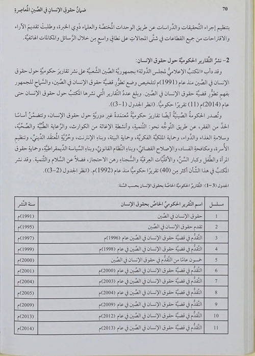 نبذة الناشر:جميع شعوب العالَم. وقد قام (تشانغ بينغ تشون)، بصفته أوَّل ممثِّل للصِّين لدى الأمم المتَّحدة ونائب رئيس لجنة الأمم المُتَّحدة لحقوق الإنسان، بصياغة الإعلان العالميِّ لحقوق الإنسان مع السَّيِّدة روزفلت وممثِّلين عن باقي دول العالَم، وقدَّموا إسهاماً أشاد به العالَمُ أجمع. وتُقِرُّ الحكومةُ الصِّينيَّةُ بالمبادئ والقِيَم الخاصَّة بحقوق الإنسان وتحترِمُها، ...وقد وقَّعَت على مجموعةٍ من اتِّفاقيَّات الأمم المتَّحدة المعنيَّة بحقوق الإنسان واعتمدَتْها، كما حرِصَت أشدَّ الحرص على استيفاء الواجبات المنصوص عليها في هذه الاتِّفاقيَّات، باذلةً في الوقت نفسه، ومن واقع ظروفها الوطنيَّة الخاصَّة، قُصارى جهودها لاستكشاف مسار تنمية حقوق الإنسان الَّذي يتلاءم مع طبيعتها، وذلك لضمان تحقيق إصلاحاتٍ مُستمِرَّةٍ لحماية حقوق الإنسان جنباً إلى جنبٍ مع التَّنمية الاقتصاديَّة والاجتماعيَّة، وتحقيق التَّنسيق والتَّوازن في حقوق الإنسان، كما أنشأت الصِّينُ مجموعةً كاملةً من أنظِمة الحماية الفعَّالة لحقوق الإنسان، فأصبح مبدأ «احترام الدَّولة لحقوق الإنسان وصَوْنها» مبدأً دستوريّاً أساسيّاً للصِّين سطَّره دستورُ الحزب الشُّيوعيِّ الصِّينيِّ الحاكم ليكون المُحَدِّد الأساسيَّ لخطط الصِّين نحو التَّنمية الاقتصاديَّة والاجتماعيَّة الوطنيَّة قبل أن يصبح أحد المبادئ الرَّئيسة الَّتي يلتزم بها الحزبُ والحكومة الصِّينيَّةُ في حكم البلاد، ويُشكِّل تطوير خُطَّتَي العمل الوطنيَّتَين لحقوق الإنسان في الصِّين وتنفيذهما بدايةَ مرحلةٍ جديدةٍ لقضيَّة حقوق الإنسان في الصِّين الّتي تعرض التَّنمية المخطَّط لها والمستمِرَّة والمُطَّرِدة والتَّقدُّم الشَّامل. إقرأ المزيد