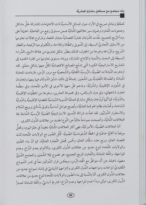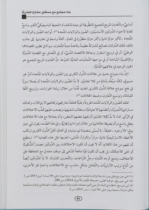 نبذة الناشر:إنّ «بناء مجتمع مع مستقبل مشترك للبشريّة» هو الجوهر والنّظريّة الأســاسـيّة الّتي تُجسّـد رؤية وفكر الأمين العـامّ للحزب الشّيوعي الصّينيّ ورئيس جمهوريّة الصّين الشّعبيّة شي جين بينغ في تقدّم العالم بأكمله، وحلّ مشاكل السّلام والتّنمية في عالمنا هذا، كلّ هذا بسماتٍ صينيّةٍ مميّزةٍ وقيمٍ مشتركةٍ للبشريّة في آن معاً، في ...سبيل تطوّر الصّين وتعزيز علاقاتها الدّوليّة مع باقي دول العالم. إقرأ المزيد