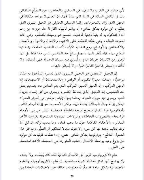 كانت بدايات الإنسان موغلة في الضعف والكلال والعجز والشقاء؛ ولم تكن توحي بأن هذا المخلوق البائس سوف يغزو الفضاء ويحط على القمر ويجوب آفاق الكون ويتعرف على كل شيء ولكنه رغم كل ما أنتجه من أفكار مضيئة، وما حققه من علوم دقيقة، وما أبدعه من آداب وفنون وتقنيات؛ إلا أنه رغم ذلك ما زال محكوماً بسوابق التاريخ إنه لم يستطع أن يتحرر من الأنساق الثقافية التي تنساب تلقائياً من كل جيل سابق إلى كل جيل لاحق، وبهذه الحتمة الثقافية بقي الإنسان أسيراً لماضيه القديم سواء من خلال ما تختزنه الجينات أو ما تتطبّع به أدمغة الأجيال...