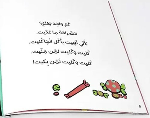 القصة مكتوبة بطريقة السجع الخفيفة على اللسان، و المسلية في السماع، والتي أكثر ما تركز في عقل الطفل.